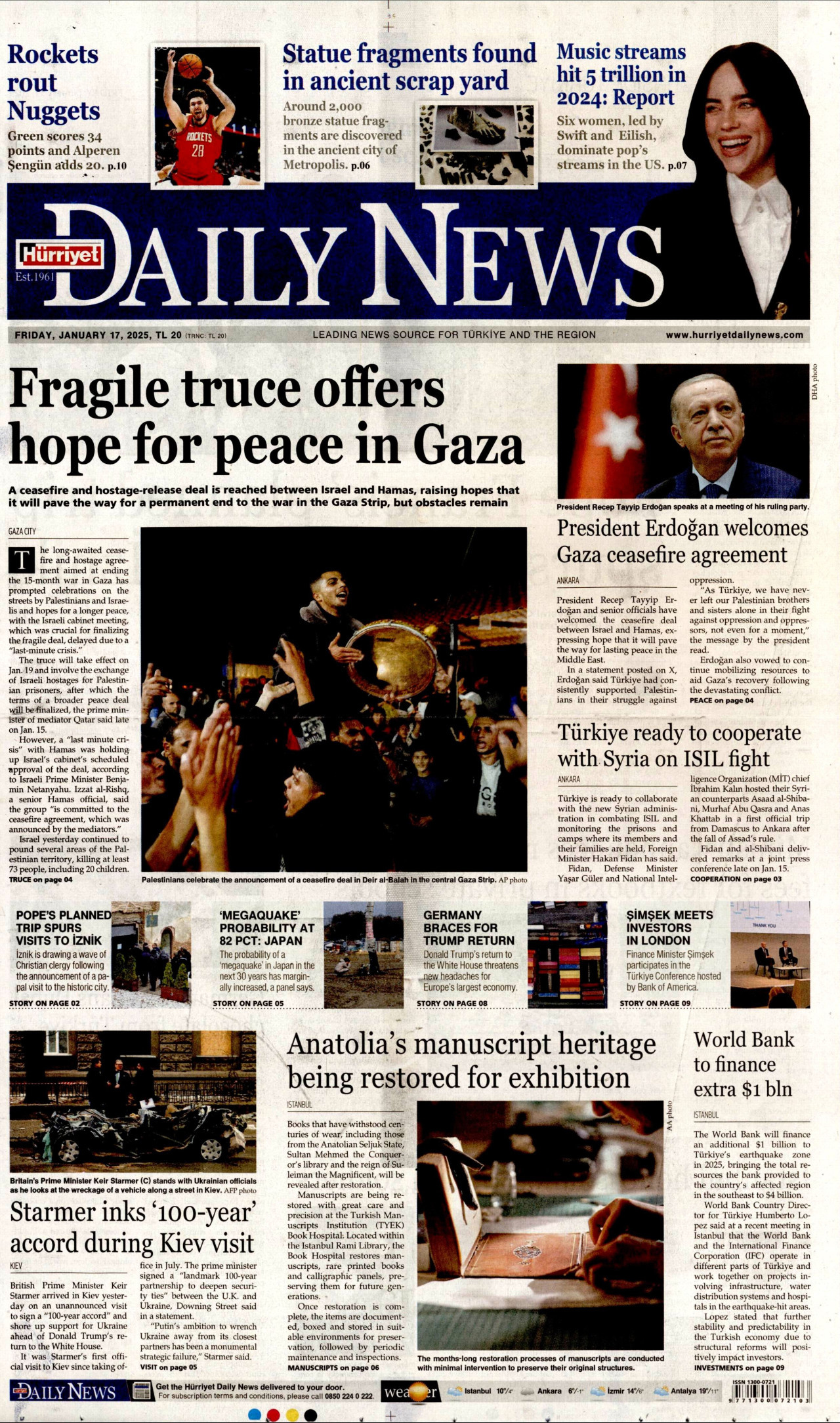 HÜRRİYET DAİLY NEWS Gazetesi 17 Ocak 2025, Cuma Günü Manşeti