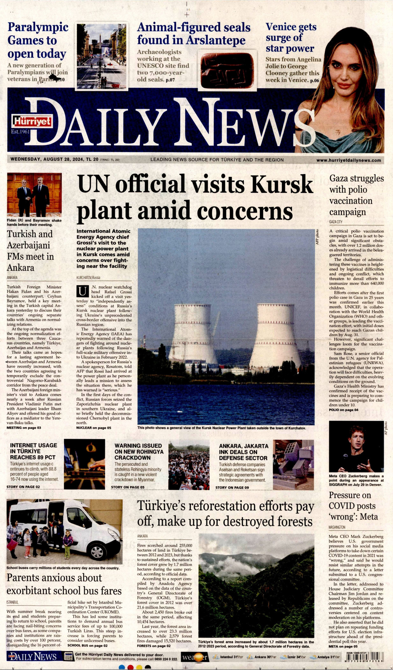 HÜRRİYET DAİLY NEWS Gazetesi 28 Ağustos 2024, Çarşamba Günü Manşeti
