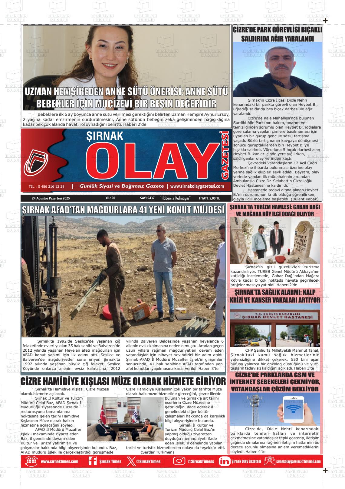 Şırnak Yerel Gazeteleri 18 Mart 2026, Çarşamba Günü Manşeti