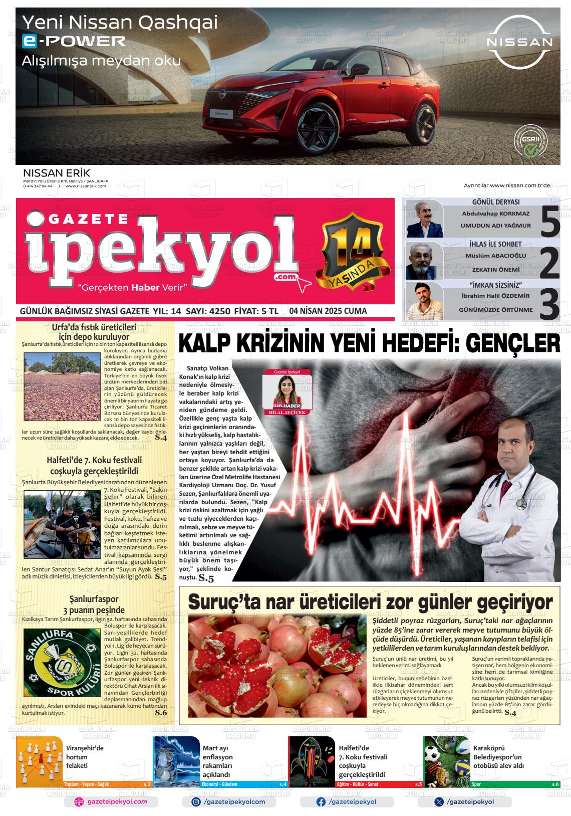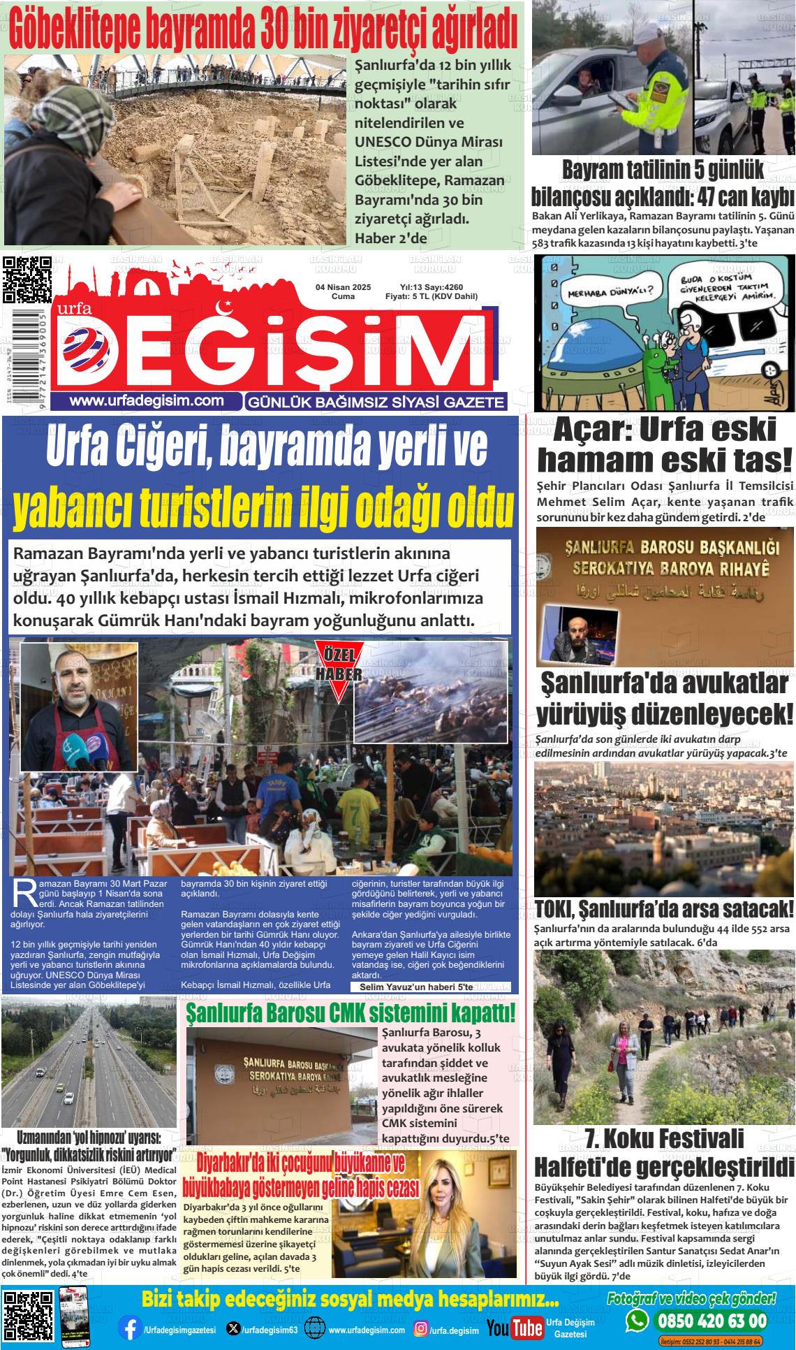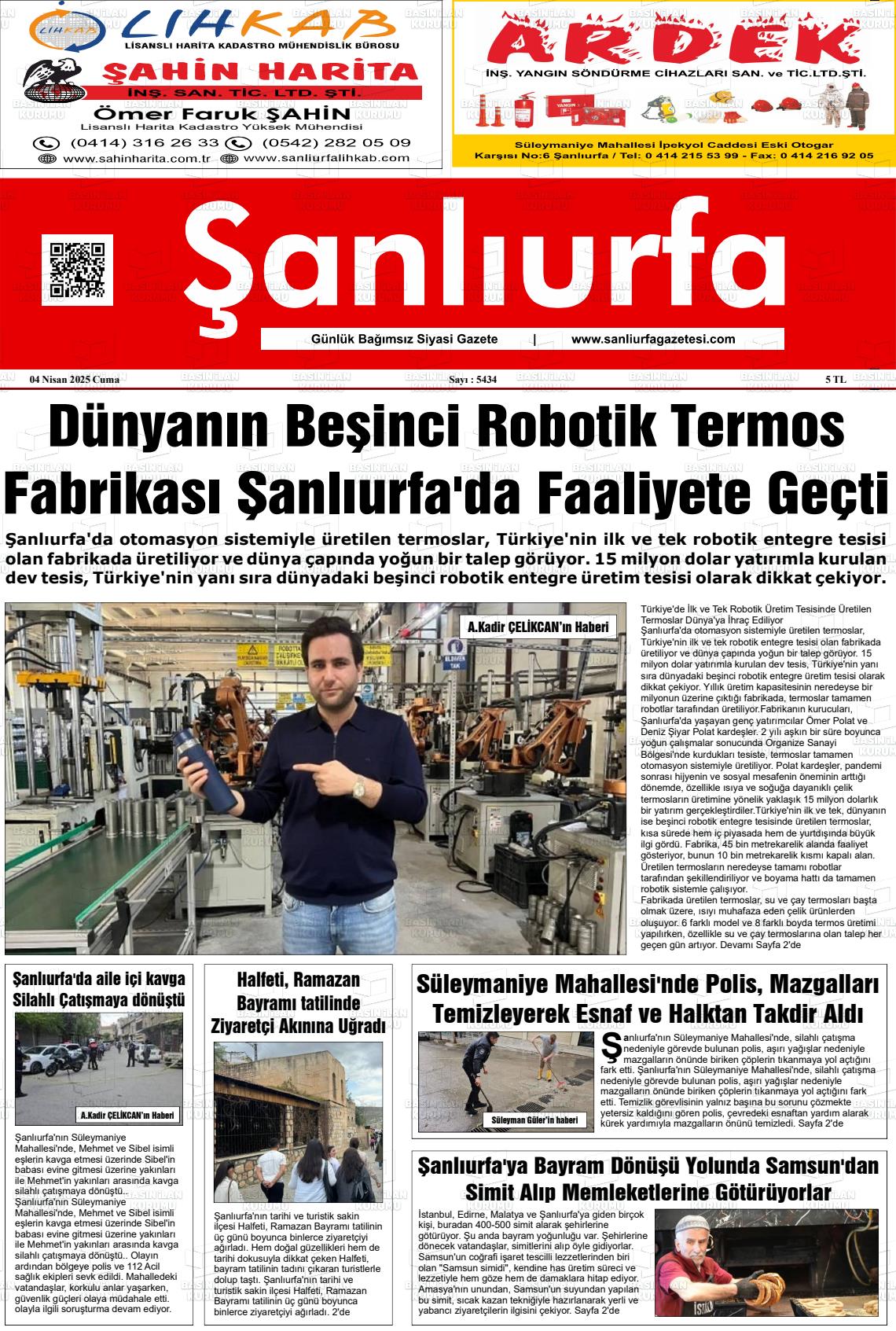 Şanlıurfa Yerel Gazeteleri 18 Mart 2026, Çarşamba Günü Manşeti