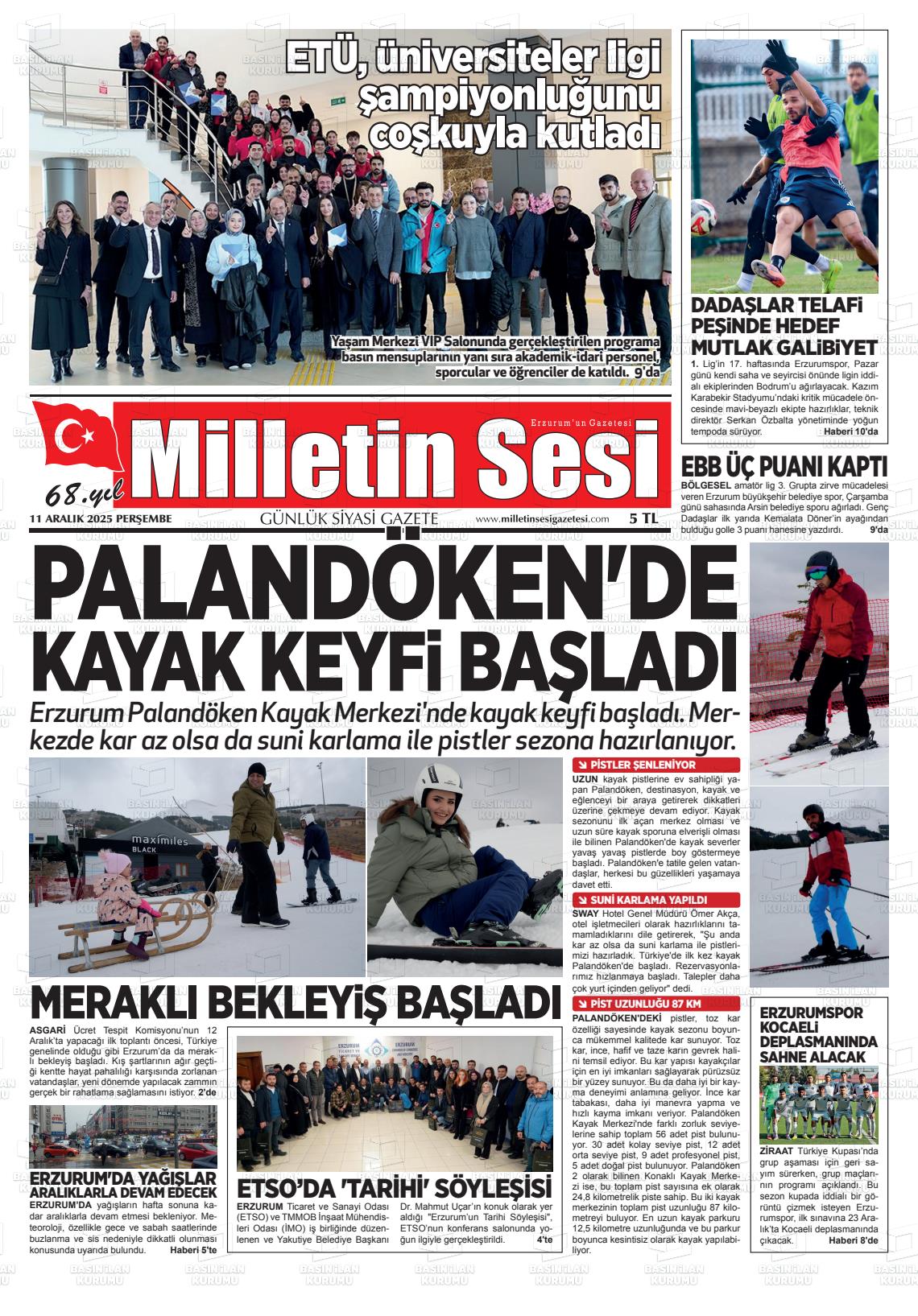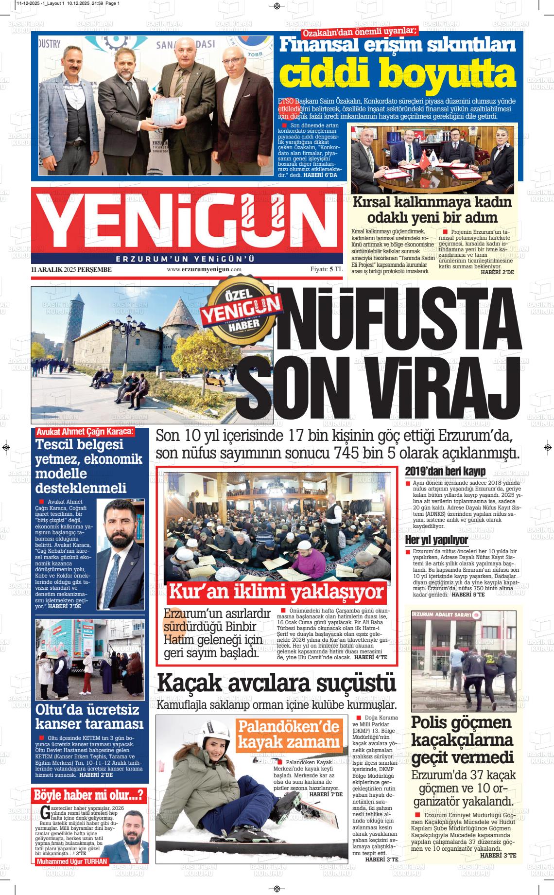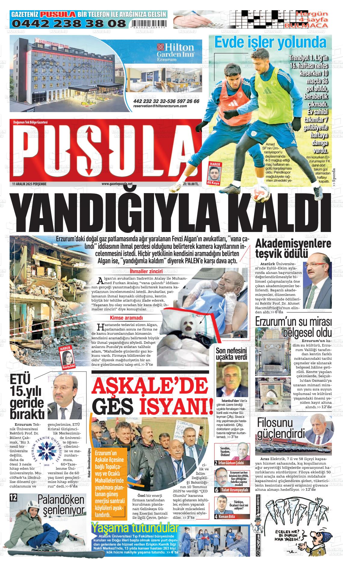 Erzurum Yerel Gazeteleri 18 Mart 2026, Çarşamba Günü Manşeti