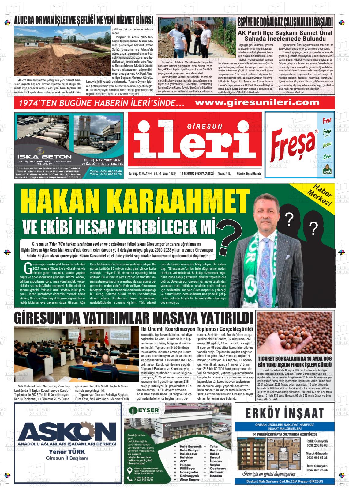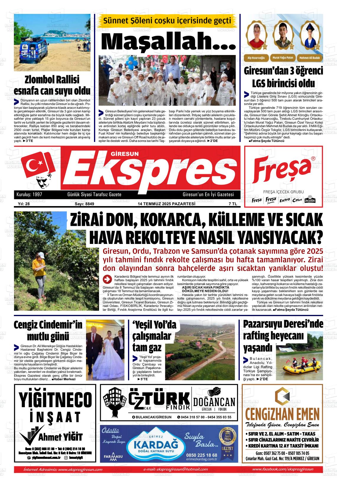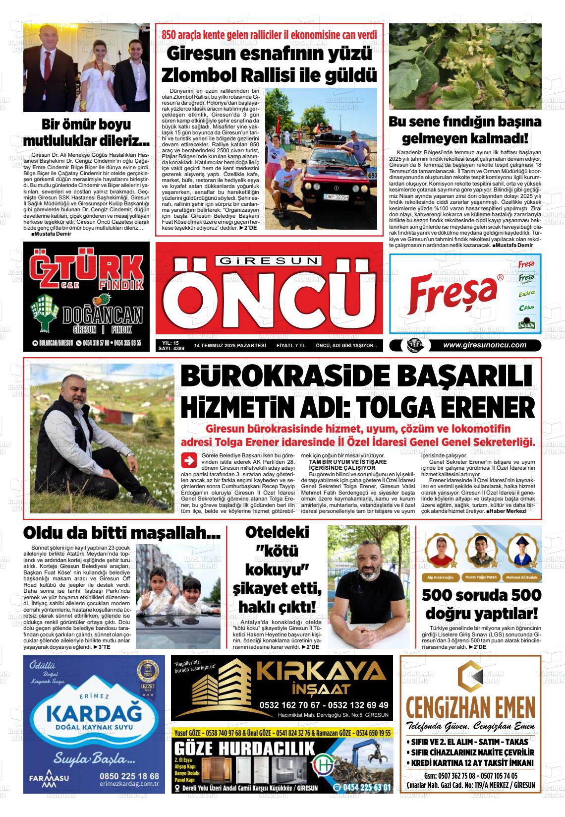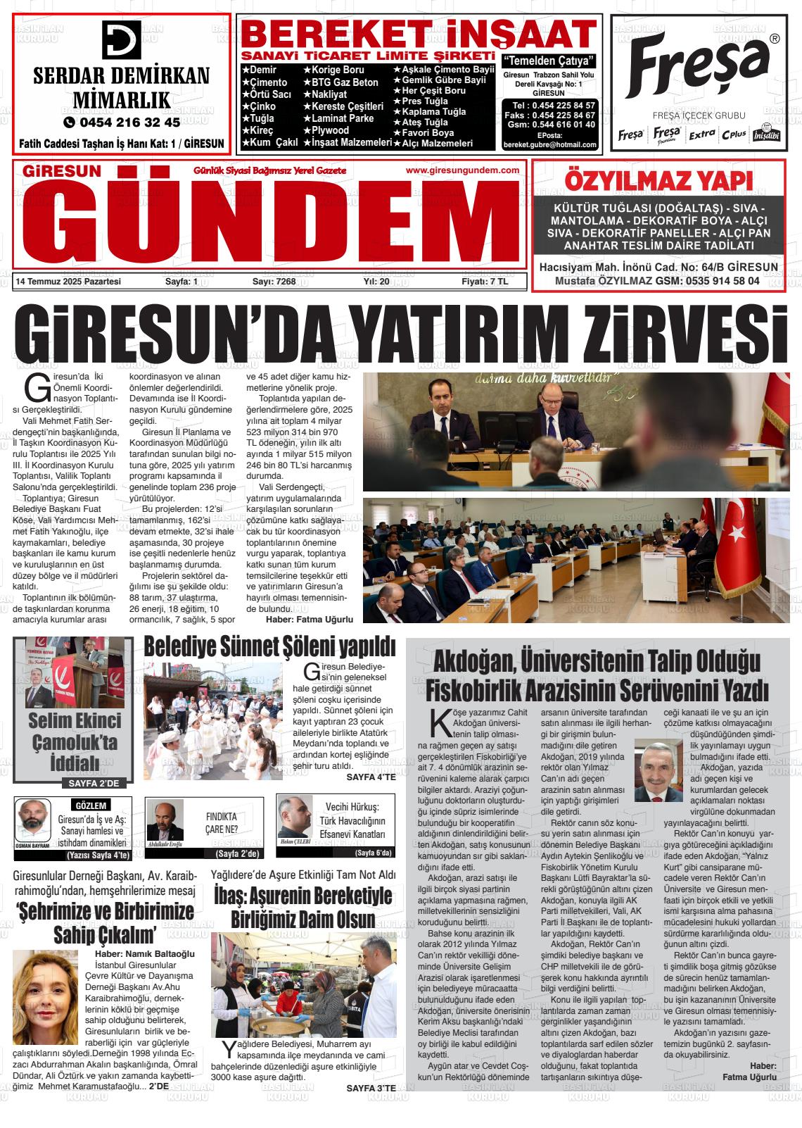 Gİresun Yerel Gazeteleri 18 Mart 2026, Çarşamba Günü Manşeti