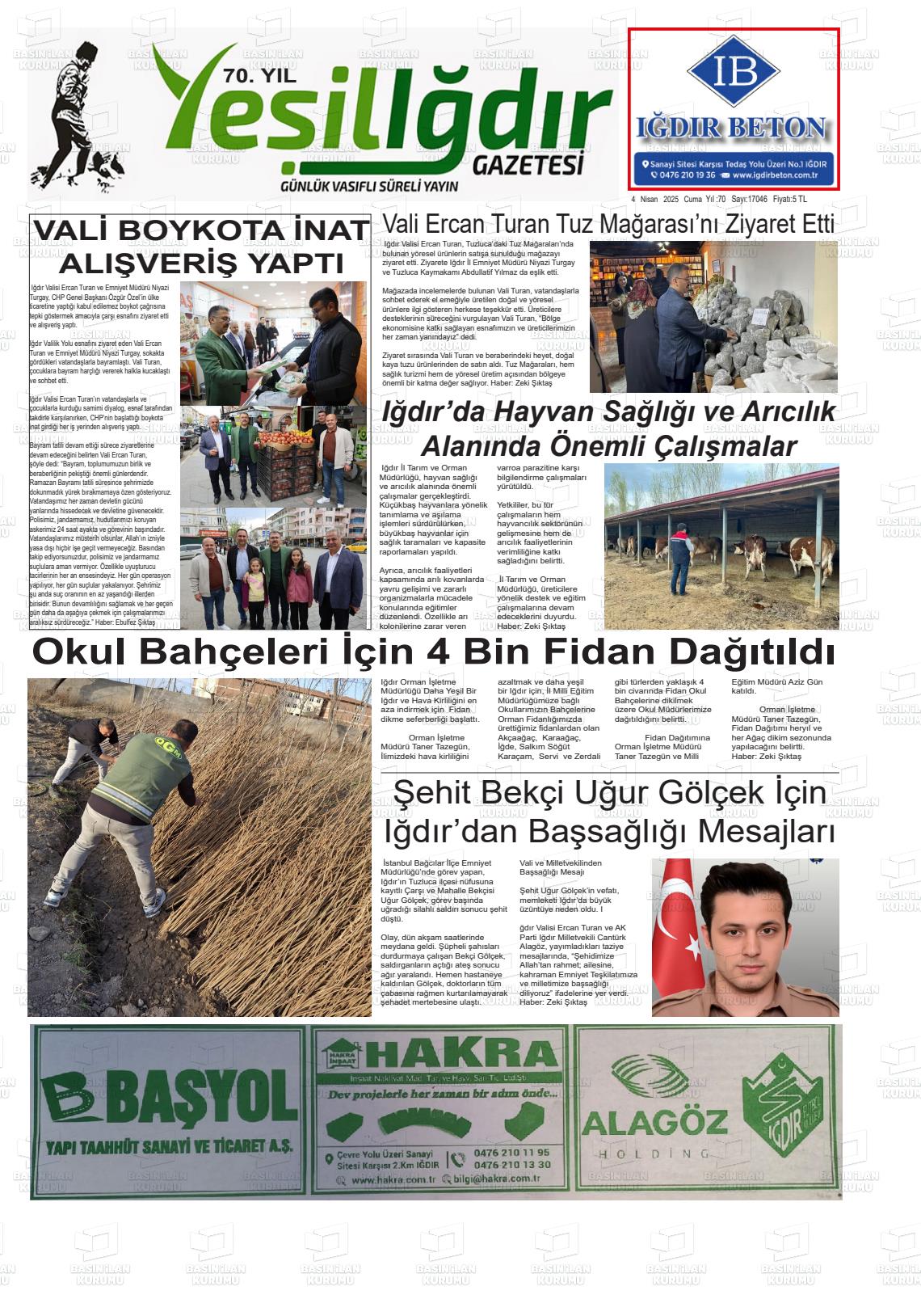 Iğdır Yerel Gazeteleri 18 Mart 2026, Çarşamba Günü Manşeti
