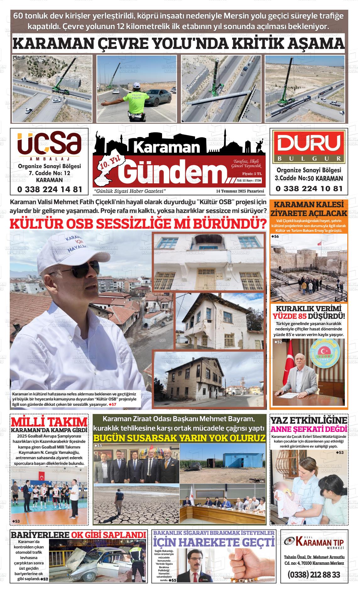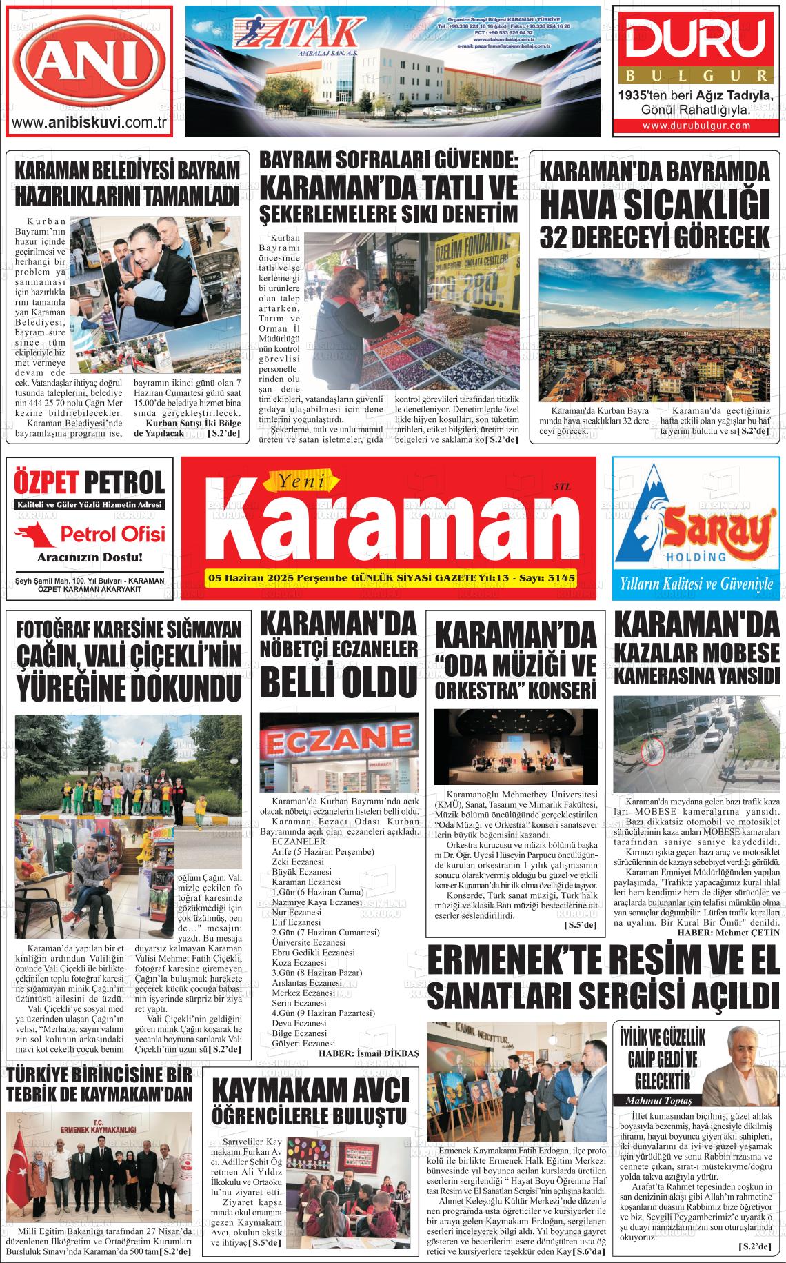 Karaman Yerel Gazeteleri 18 Mart 2026, Çarşamba Günü Manşeti