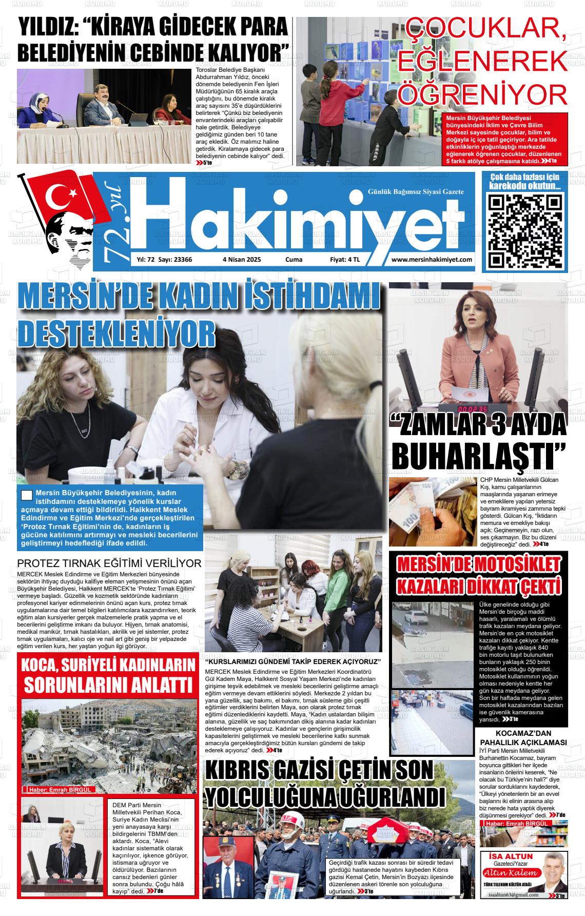 Mersİn Yerel Gazeteleri 18 Mart 2026, Çarşamba Günü Manşeti