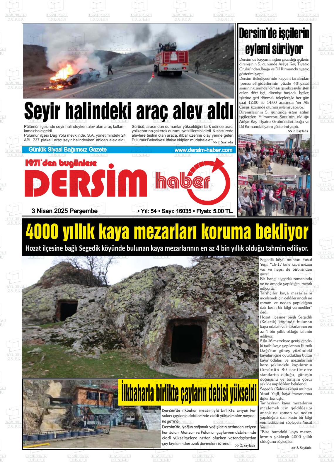 Tuncelİ Yerel Gazeteleri 18 Mart 2026, Çarşamba Günü Manşeti